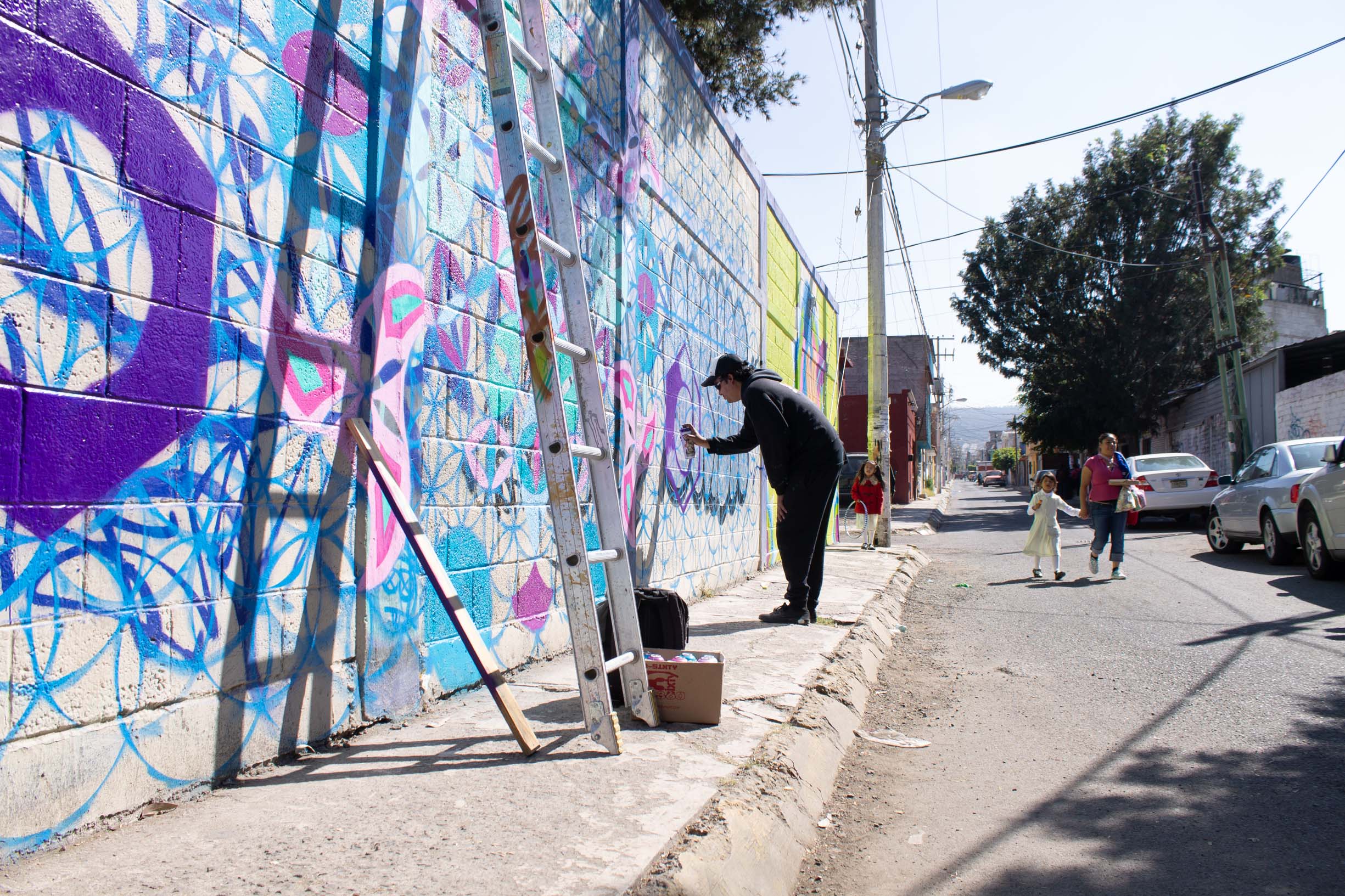 Artista queretano, emergente y autodidacta, se inspira en las vibraciones, en lo sagrado y espiritual, transmitiendo paz y tranquilidad en sus murales: experimenta principalmente con la geometría sagrada para realizar sus composiciones a las cuales llena de color mediante el uso del aerosol.