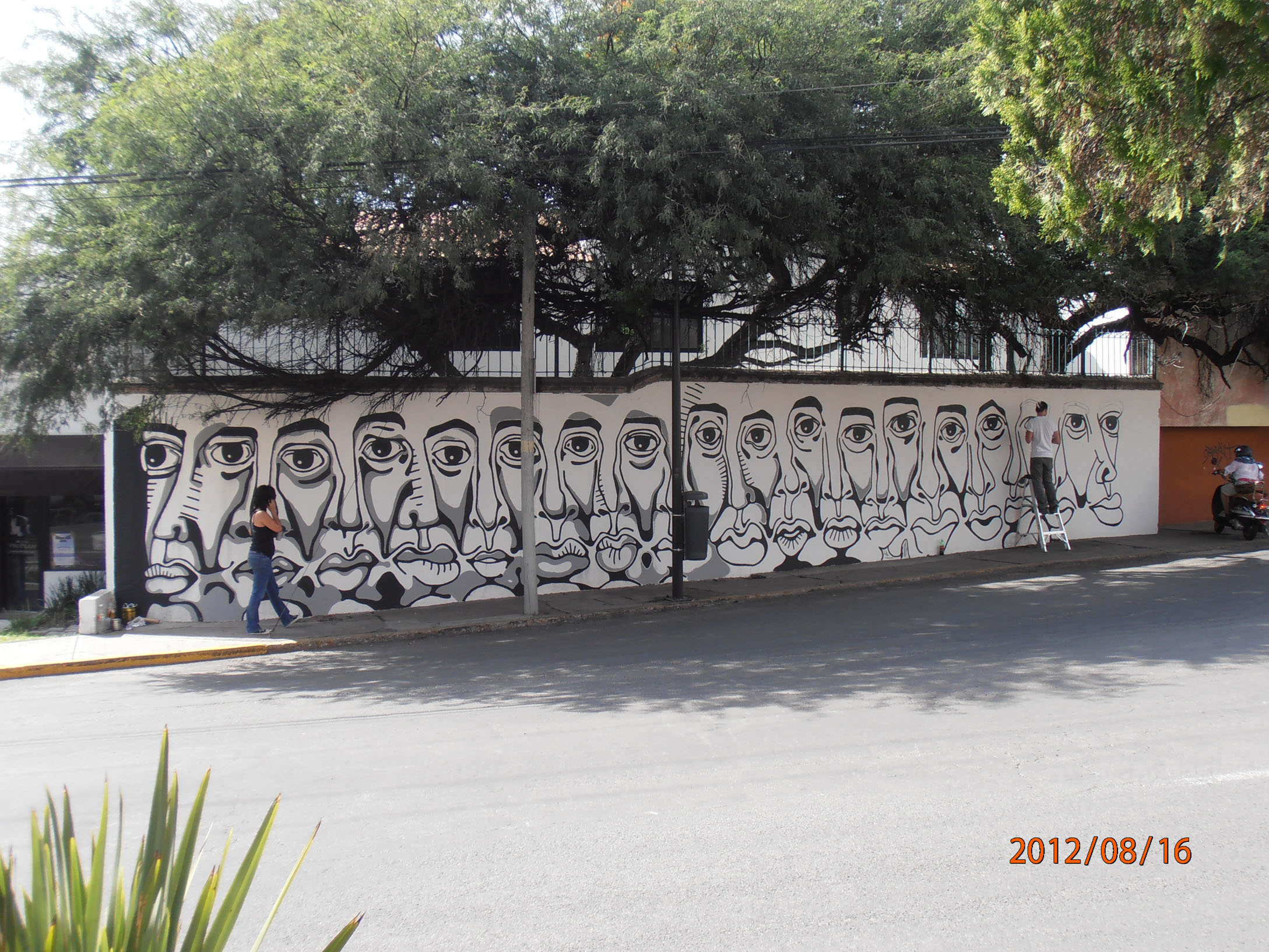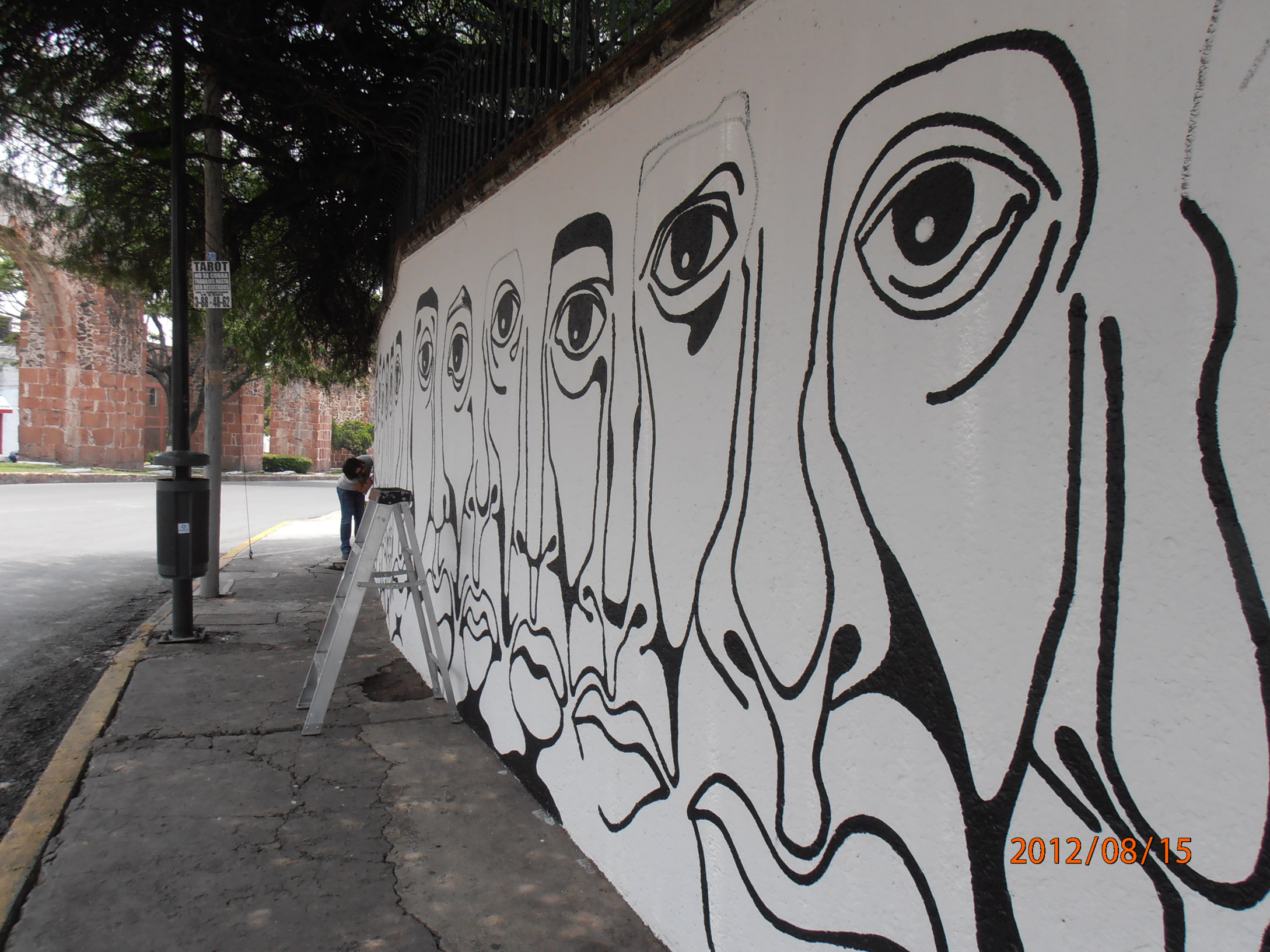 • Miguel Valiñas con el mural “Espectadores” en Calzada de los Arcos, entrando a Hércules